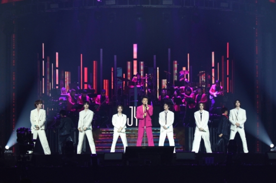 박진영과의 합동 무대도 많은 볼거리를 남겼다. 하얀 슈트를 입은 멤버들은 박진영과 함께 무대에 올라 그의 히트곡 '너뿐이야'를 선보였다. 세련된 원곡에 신나는 퍼포먼스, 멤버들의 익살스러운 표정이 더해져 한 편의 뮤지컬 같은 무대가 완성됐다. 이들은 트리뷰트 스테이지에 오른 다른 아티스트들과 함께 '날 떠나지마'를 열창하며 특별 무대를 아름답게 마무리했다.
