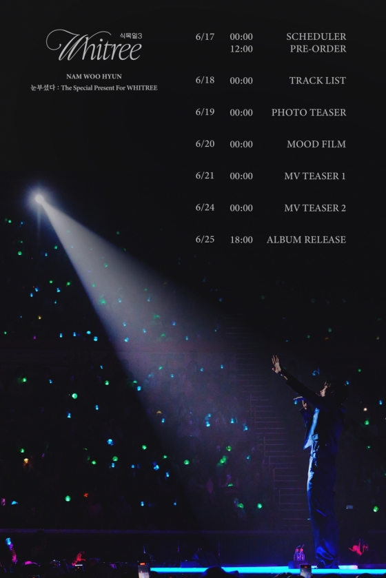 뿐만 아니라 남우현은 17일 0시 공식 SNS 계정을 통해 라이브 앨범의 프로모션 스케줄러를 공개했다. 공개된 스케줄러에 따르면 오는 18일 트랙리스트를 시작으로 포토 티저, 무드 필름, 뮤직비디오 티저 등 다채로운 콘텐츠를 순차적으로 공개한다.