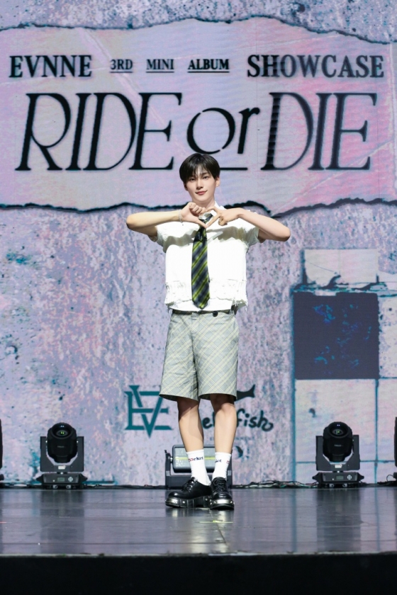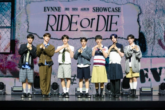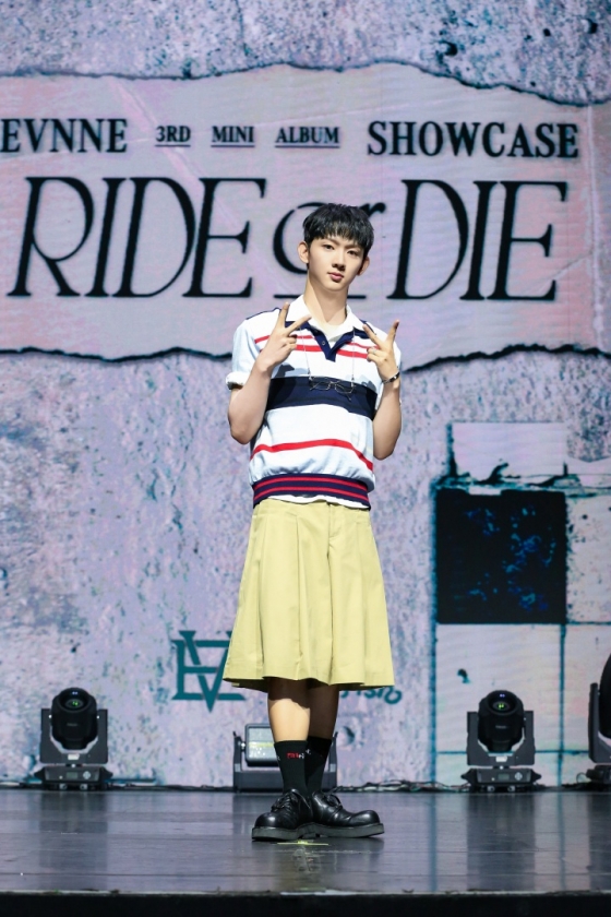 이븐(케이타, 박한빈, 이정현, 유승언, 지윤서, 문정현, 박지후)은 17일 오후 서울 광진구 광장동 예스24라이브홀에서 세 번째 미니앨범 'RIDE or DIE' 발매 기념 미디어 쇼케이스를 개최했다.