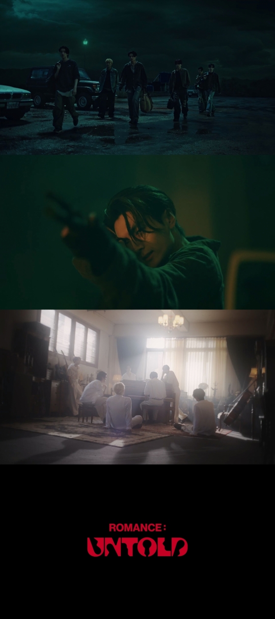 엔하이픈(정원, 희승, 제이, 제이크, 성훈, 선우, 니키)은 21일 0시 하이브 레이블즈 유튜브 채널을 통해 정규 2집 'ROMANCE : UNTOLD'의 콘셉트 시네마(UNTOLD Concept Cinema) 티저를 공개했다.