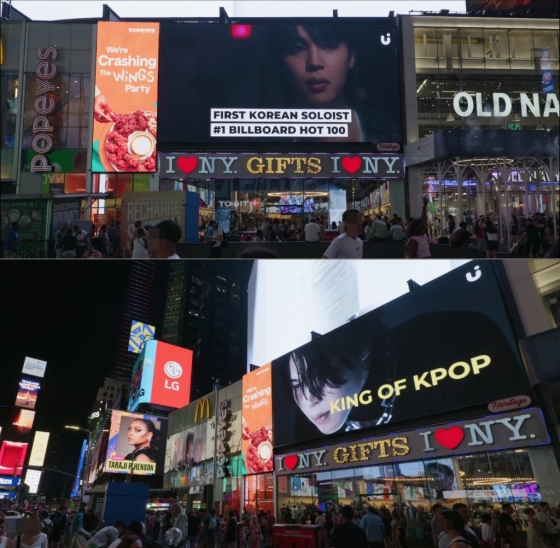방탄소년단 지민, 뉴욕 타임스퀘어 접수..군백기에도 '핫 인기'