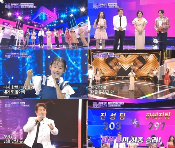 두 전설의 대결 끝에 최종 결과가 공개됐다. 마지막 대결을 펼친 진성과 한혜진의 대결에서 진성이 승리하며 점수가 뒤집혔고 대역전승을 이뤄내며 극적인 승리를 거둔 진성 팀은 즐거움을 만끽했다.