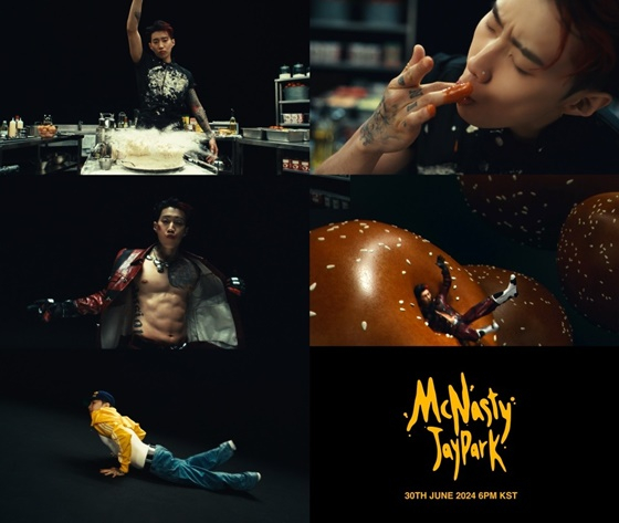 공개된 영상에는 블랙 셰프복을 입은 박재범이 화려하게 칼을 저글링하는 모습이 담겼다. 박재범은 손에 묻은 양념을 맛보거나, 거대한 햄버거 빵 위를 통통 튀어 다니는 모습을 보이고 있다.