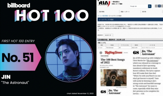 '디 애스트로넛'은 한국음악콘텐츠협회(KMCA) 공인 솔로 싱글 최초의 밀리언셀러에 등극했으며, 일본 RIA에서도 2022년 한국 솔로 아티스트 최초로 골든 인증을 획득했다. 미국 음악 매거진 롤링스톤(Rolling Stone)이 뽑은 '2022년 최고의 노래 100'에서 아시아 솔로 가수 중 최고 순위에 오르는 등 뛰어난 음악성과 역량을 인정 받은 바 있다.