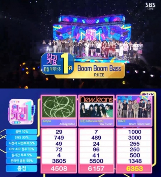 1위 후보로는 에스파 'Armageddon'과 뉴진스 'How Sweet', 라이즈 'Boom Boom Bass'가 나란히 이름을 올렸다.