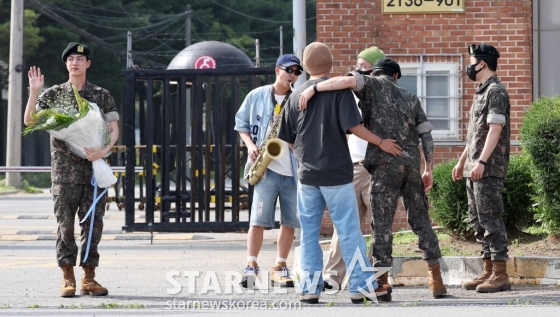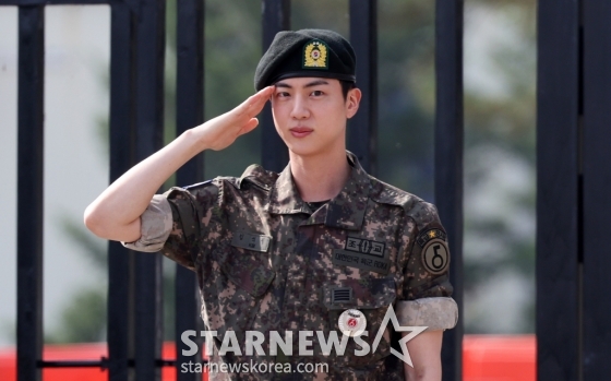 앞서 진은 지난달 12일 경기도 연천군에 위치한 제5보병사단에서 육군 병장 만기 전역한 바. 방탄소년단의 맏형으로 가장 먼저 입대했던 진은 그룹 내 첫 군필자의 탄생을 알리며 군백기의 종료가 다가왔음을 시사했다. 특히 현재 사회복무요원으로 대체 복무 중인 슈가를 제외한 RM, 제이홉, 지민, 뷔, 정국이 진의 전역식을 찾아 훈훈함을 안기기도 했다.