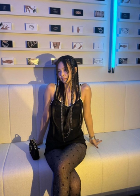 공개된 사진 속엔 제니가 민소매 미니 원피스를 입고 긴 목걸이로 자신의 분위기를 더했다. 특히 그는 카메라 앞에서 힙한 느낌을 보여 이목을 끌었다.