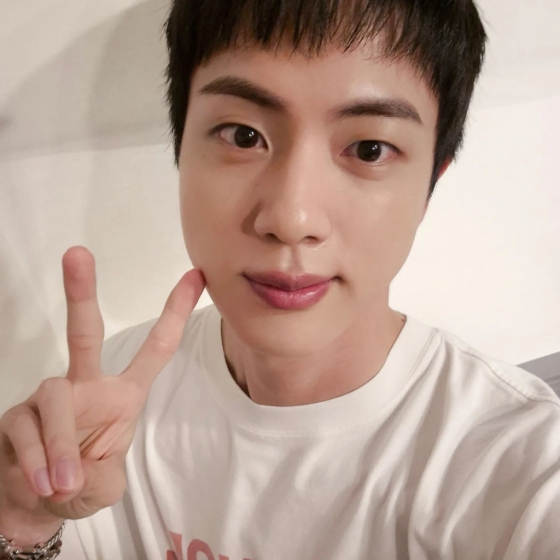 사진 속 진은 화이트 티셔츠를 입고 카메라를 향해 브이 포즈를 취하고 있는 모습. 전역한 지 아직 한 달도 지나지 않아 다소 짧은 헤어스타일이지만 여전히 훈훈한 비주얼로 전 세계 아미(팬덤명) 심장을 뒤흔들었다.