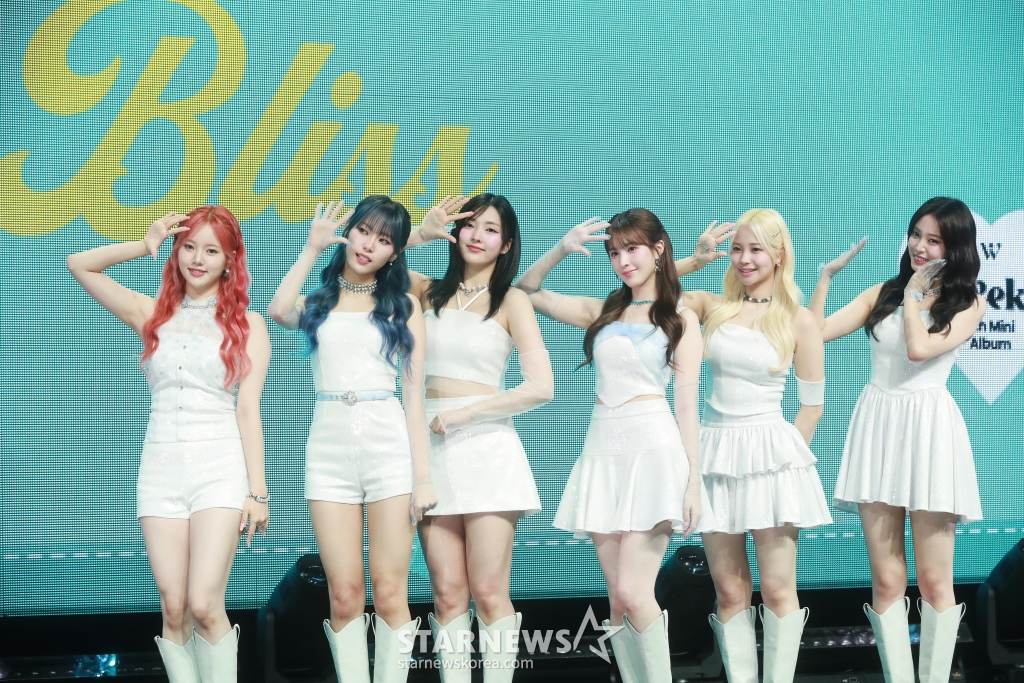 걸그룹 위클리(Weeekly)가 9일 서울 마포구 서교동 메세나폴리스 신한카드 SOL 페이 스퀘어 라이브홀에서 진행된 미니 6집 '블리스(Bliss)' 쇼케이스에서 포즈를 취하고 있다. 타이틀곡 '라이츠 온(LIGHTS ON)'은 여름의 열정과 시원한 에너지를 위클리만의 맑고 건강한 매력으로 풀어낸 노래다. /2024.07.09 /사진=이동훈