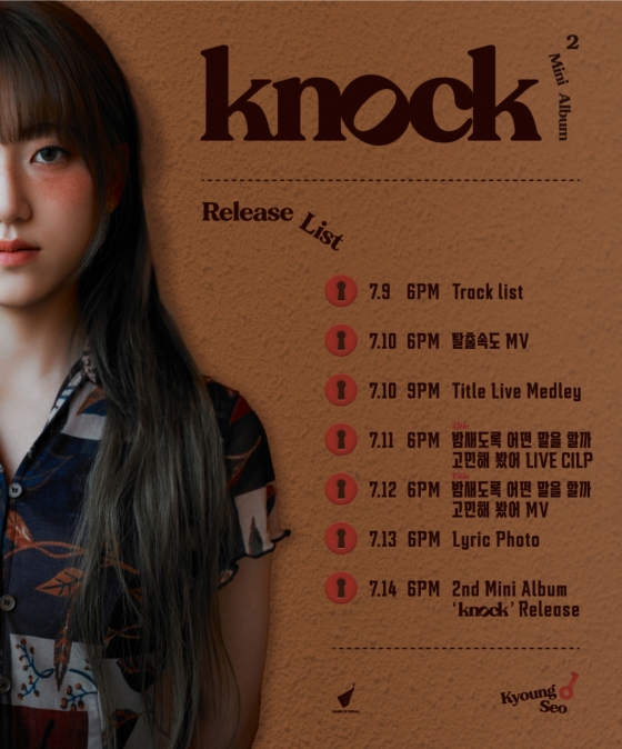 'Knock'는 경서가 지난해 5월 발매한 미니 1집 'ONGOING (온고잉)' 이후 1년 2개월 만에 선보이는 새 미니앨범이다. 앞선 선공개곡 '너는 나를 뭐라 부를래'로 청량한 시티팝 사운드를 들려준 경서가 미니 2집 본편에선 어떤 감성과 메시지를 전할지 기대감이 집중된다.