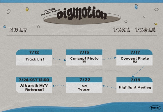 이에 디그니티는 이날 정오 공식 SNS에 '디그모션'의 타임 테이블을 공개하며 데뷔일을 공식화했다. 이에 따르면 디그니티는 트랙리스트, 2종 콘셉트 포토, 하이라이트 메들리, 뮤직비디오 티저를 순차적으로 공개하면서 오는 24일 정식 데뷔까지 화제성을 이어갈 예정이다.