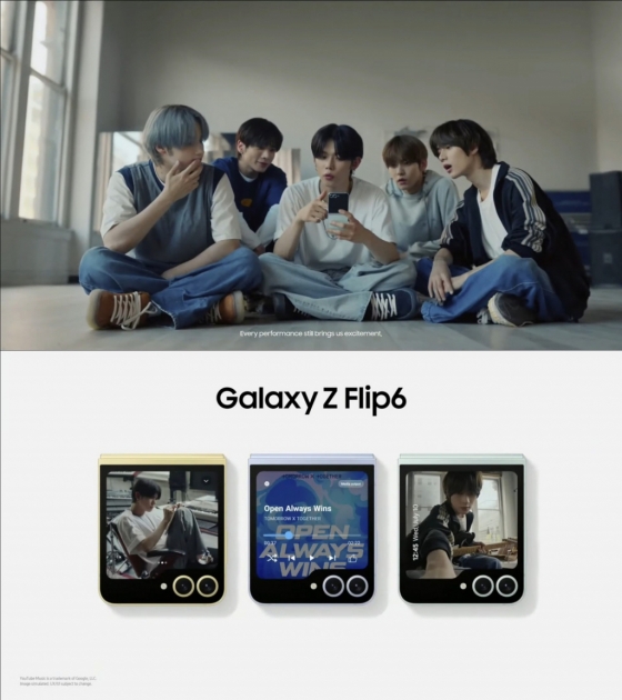 삼성전자는 지난 10일 개최한 '갤럭시 언팩 2024'에서 투모로우바이투게더(수빈, 연준, 범규, 태현, 휴닝카이)와 함께 제작한 브랜드 음원 'Open Always Wins'의 기타 멜로디 일부와 메이킹 필름을 현장에서 선공개했다. 영상은 강렬한 사운드와 목표를 향해 나아가는 멤버들의 모습을 담아, 보는 이들의 마음 속 열정을 끓어오르게 만들며 본 음원에 대한 기대감을 높였다.