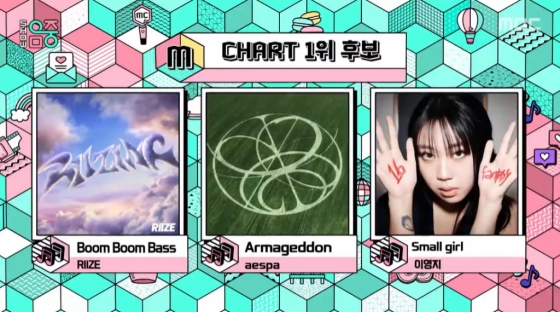 이날 라이즈는 지난달 17일 발매한 첫 미니앨범 타이틀곡 'Boom Boom Bass', 에스파는 첫 번째 정규앨범 타이틀곡 'Armageddon'으로 '음중' 1위 후보에 이름을 올렸다. 이영지는 엑소 디오(본명 도경수)가 피처링으로 참여한 신곡 'Small girl'로 라이즈, 에스파와 대결을 펼친다.