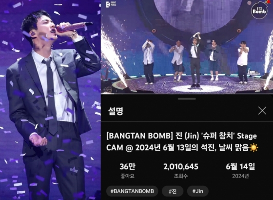 방탄소년단(BTS) 진이 팬미팅에서 선보인 '슈퍼참치' 2절 영상이 200만 뷰를 돌파하며 인기를 빛냈다
