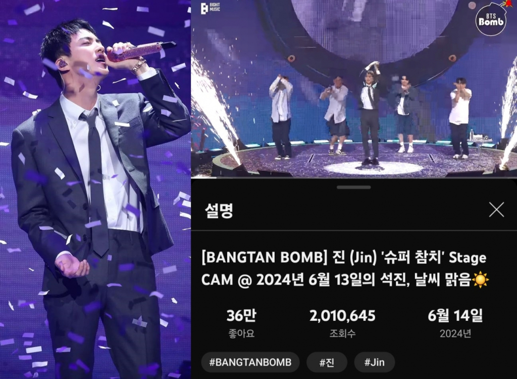 진의 '슈퍼참치' 무대 영상은 빠르게 조회수를 높이며 32시간 만에 100만뷰를 돌파, 7월 12일 200만 뷰를 넘기는 저력을 보여주며 7월 14일 오후 10시 기준 203만 뷰를 기록하고 있다.