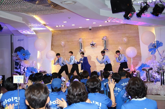 지난 14일 서울 서강대학교 곤자가 컨벤션 홀에서 마이진 팬클럽 '블루'의 7주년을 기념하는 팬 모임이 열렸다.