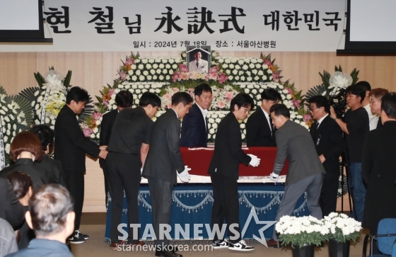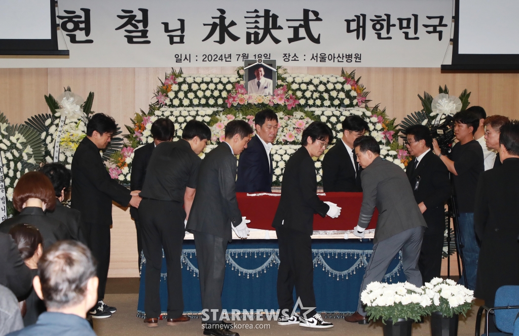 고 현철(본명 강상수)의 발인식이 18일 오전 8시20분 서울 풍납동 아산병원 장례식장에서 대한민국가수장으로 엄수됐다. 굵은 빗줄기가 쏟아진 이날 현장에는 유족 및 지인들과 여러 가요계 동료들이 마지막 길을 함께 했다. 장지는 분당 추모공원 휴다. 유족 및 지인들과 이자연 태진아 설운도 배일호 현숙 인순이 김용임 강진 유지나 박상철 진성 박구윤 등 동료들은 고인의 마지막 길을 지켜보며 눈물을 흘렸다.