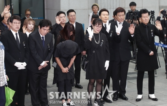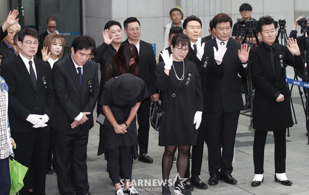 이날 영결식에서 약력 보고에 나선 배일호는 "가슴이 미어진다"라며 "우리나라 가요사에 커다란 활동을 해오시며 노래만을 천직으로 삼고 평생 국민가수로 무대를 지켜오셨다. 대중과 함께 영원히 기억되길 빌며 평안히 안식하시길 기원한다"라고 말했다.