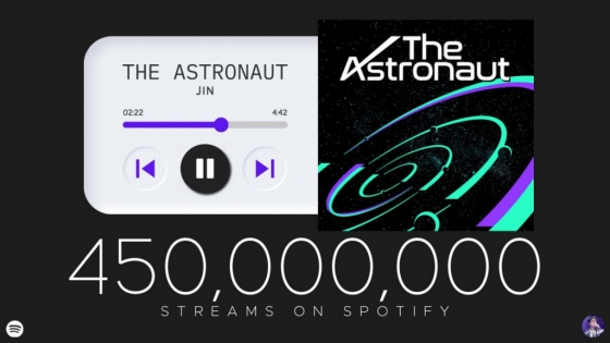 진의 첫 솔로 싱글 '디 애스트로넛'은 지난 7월 13일 세계 최대 음원 플랫폼 스포티파이(Spotify)에서 4억 5000만 스트리밍을 돌파했다.