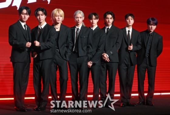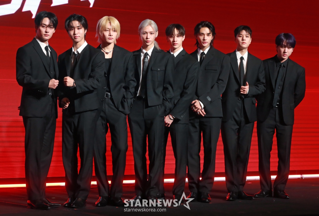 19일 오전 스트레이 키즈(방찬, 리노, 창빈, 현진, 한, 필릭스, 승민, 아이엔)은 서울 영등포구 여의도동 콘래드 서울에서 새 미니앨범 '에이트(ATE)' 발매 기념 기자간담회를 개최했다.
