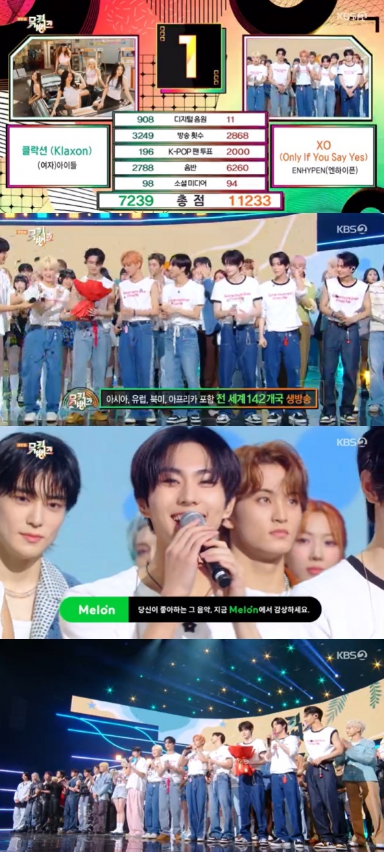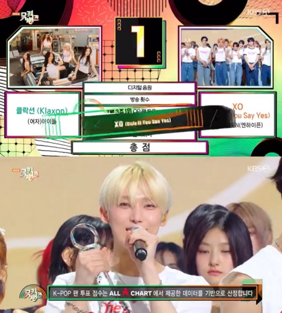 그룹 엔하이픈이 'XO'로 뮤직뱅크'에서 첫 1위를 차지했다.