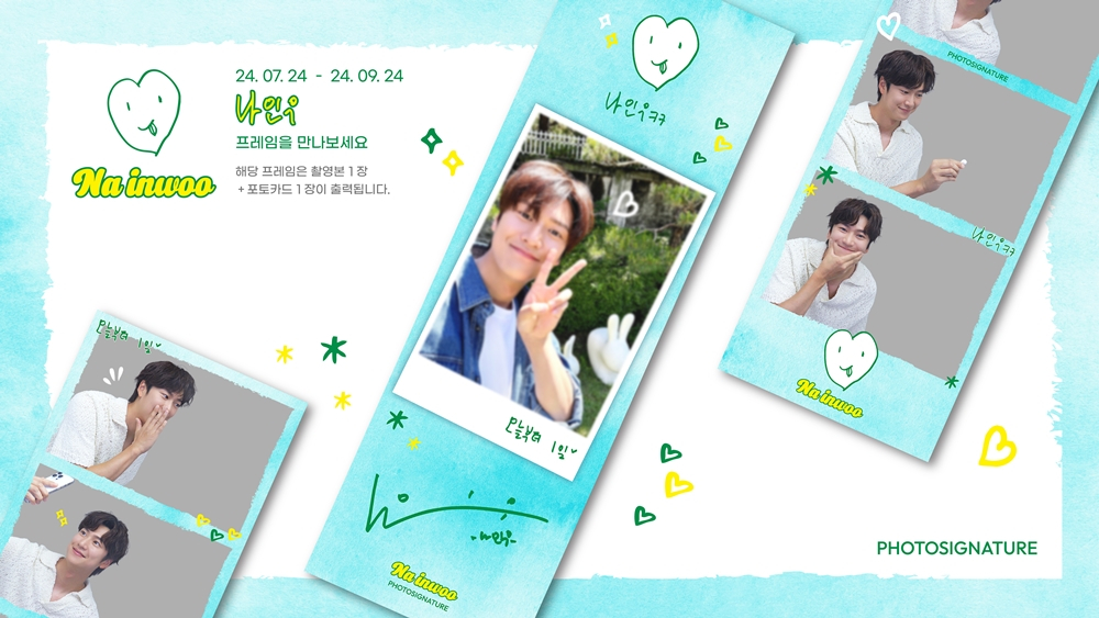 나인우는 오는 24일 국내 240여 개 포토 매장을 운영 중인 대표 셀프 포토 브랜드 포토시그니처의 전국 매장에 특별한 포토 프레임을 공개한다. 이번 포토 프레임은 8월 10일 오후 6시 서울 강서구 스카이아트홀에서 열리는 나인우의 단독 팬미팅 'AUGUST INWOO LOVE'(어거스트 인우 러브)를 기념해 제작됐다.