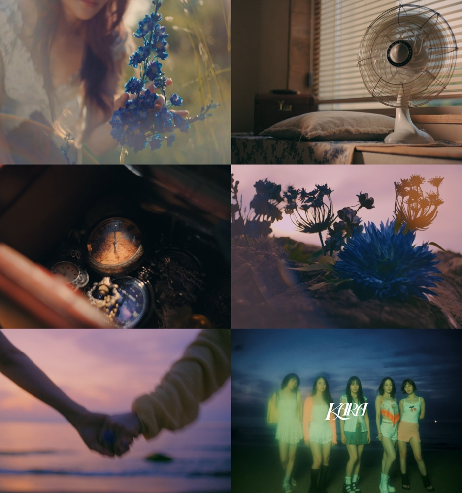 공개된 영상에는 낮부터 저녁까지, 꿈결 같은 여름날의 기록이 빠르게 지나간다. 특히, 이번 싱글 티징 콘텐츠 속에 계속해 모습을 보이고 있는 여름에만 피는 꽃 블루델피늄에 이어, 데뷔 15주년 기념 스페셜 앨범 'MOVE AGAIN' 발매일인 11시 29분을 가리키는 시계 등 카라와 인연이 깊은 오브제들이 잇달아 등장해 눈길을 끈다. 몽환적인 분위기가 감도는 가운데, 누군가와 함께 저녁 바다를 걷는 듯한 기억 조작을 불러일으키며 아련한 감성을 배가했다.