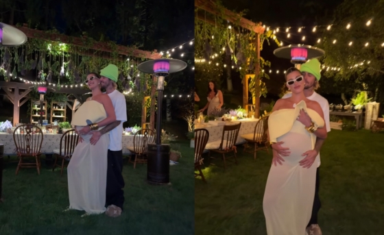 공개된 영상 속엔 그가 헤일리 비버를 백허그 하고 부풀어 오른 배를 만지며 춤추고 있다. 이에 헤일리 비버도 기쁜 표정을 짓고 있다.