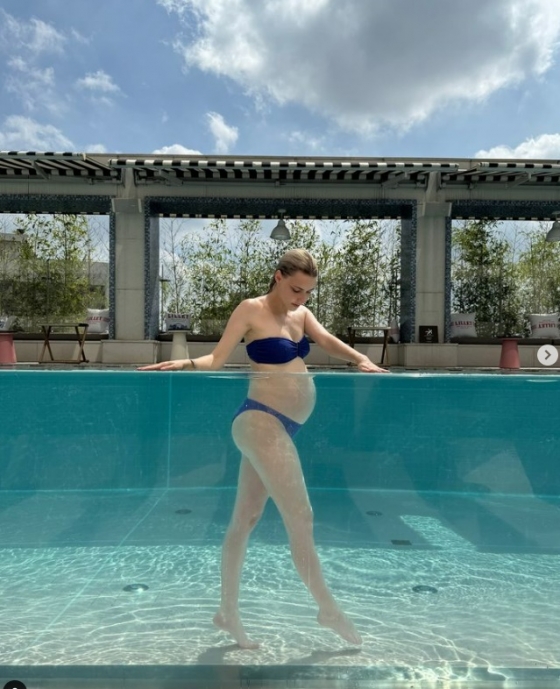 그는 뱃속의 아이와 자유롭게 수영하는 모습을 보여주며 예비맘으로서의 설레는 모습을 보여줬다.