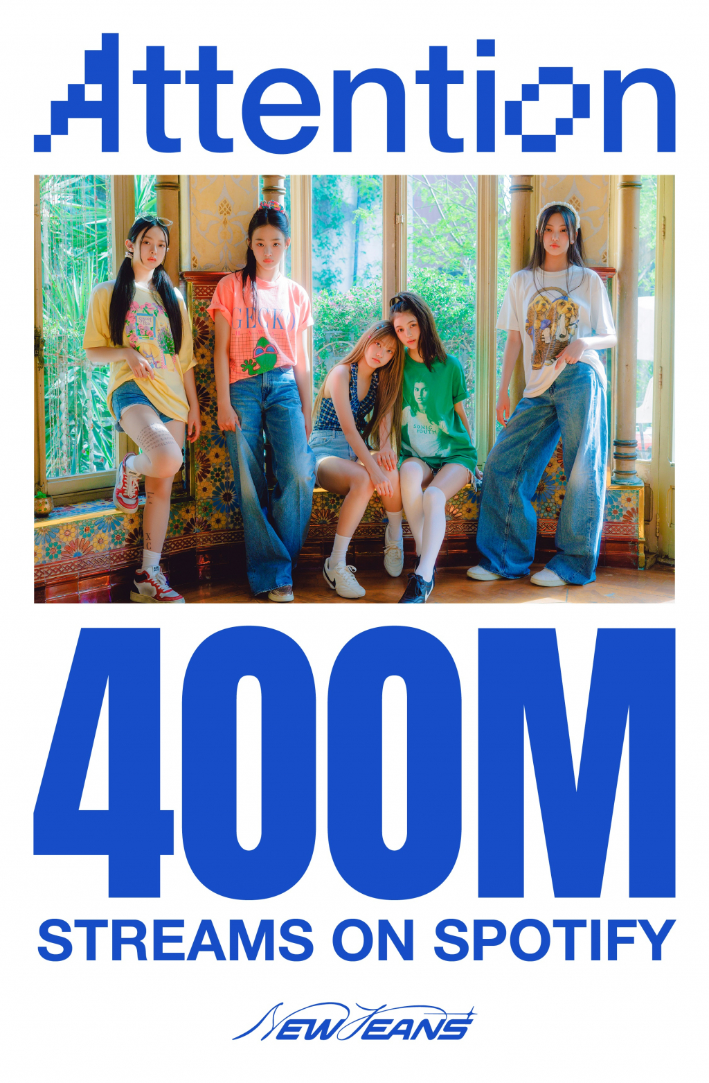 또한 데뷔 앨범 'New Jeans'의 트리플 타이틀곡 중 하나인 'Attention'은 이날 4억 13만 1,668회 재생됐다. 이로써 'Attention'은 뉴진스 통산 다섯 번째 4억 스트리밍 곡이 됐다.