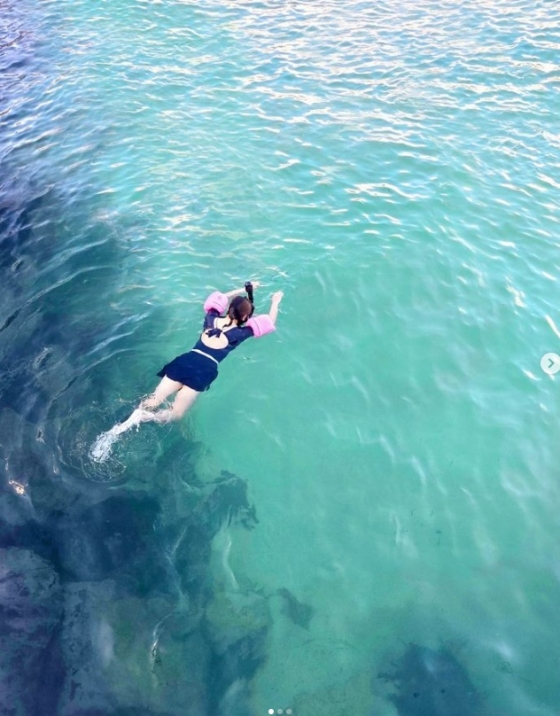 사진 속에는 송가인이 제주의 맑고 푸른 바다에서 스노클링을 즐기고 있었다.