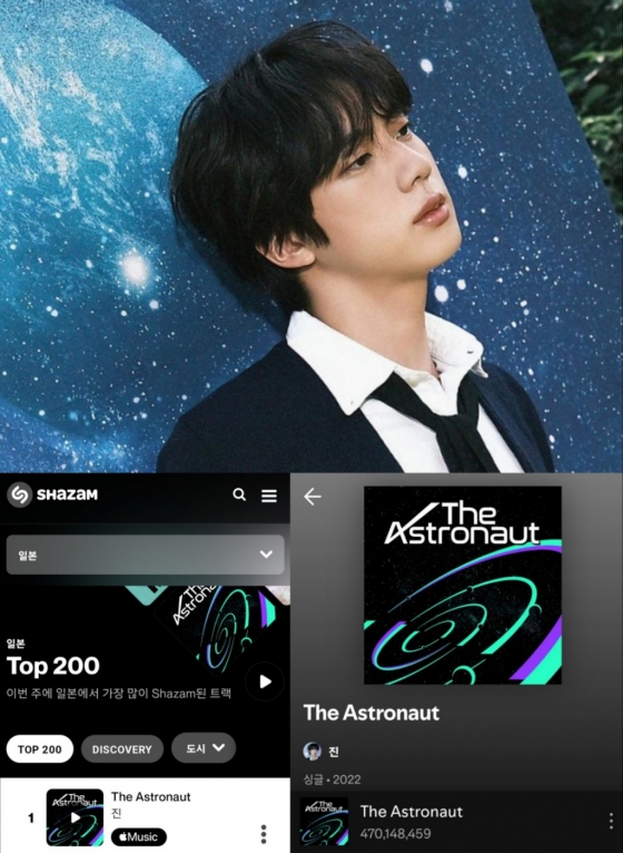 진의 '디 애스트로넛'은 세계 최대 음원 검색 플랫폼 샤잠(Shazam) '일본 TOP200' 차트에서 7월 30일부터 8월 2일까지 4일 연속 1위를 차지하며 총 337일 1위라는 대기록을 세웠다.