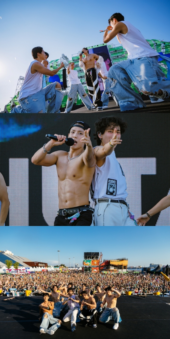 먼저 솔로 활동명인 허타(HUTA)로 무대에 오른 이민혁은 '아임 레어(I'm rare)', '위험해', '넌 나의 봄이야', '붐(BOOM)' 등 글로벌 팬들의 큰 사랑을 받은 곡들을 선보였다. 서울에 이은 과감한 상의 탈의로 탄탄한 근육질 몸매를 드러낸 채 쏟아지는 물줄기를 맞으며 공연의 분위기를 뜨겁게 달궜다.