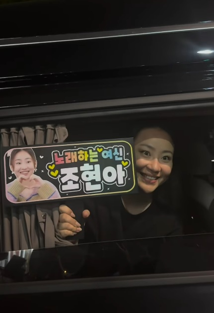 영상 속에는 조현아가 차를 타고 퇴근길에 오른 가운데 팬들과 소통하는 모습이 담겨 있었다.