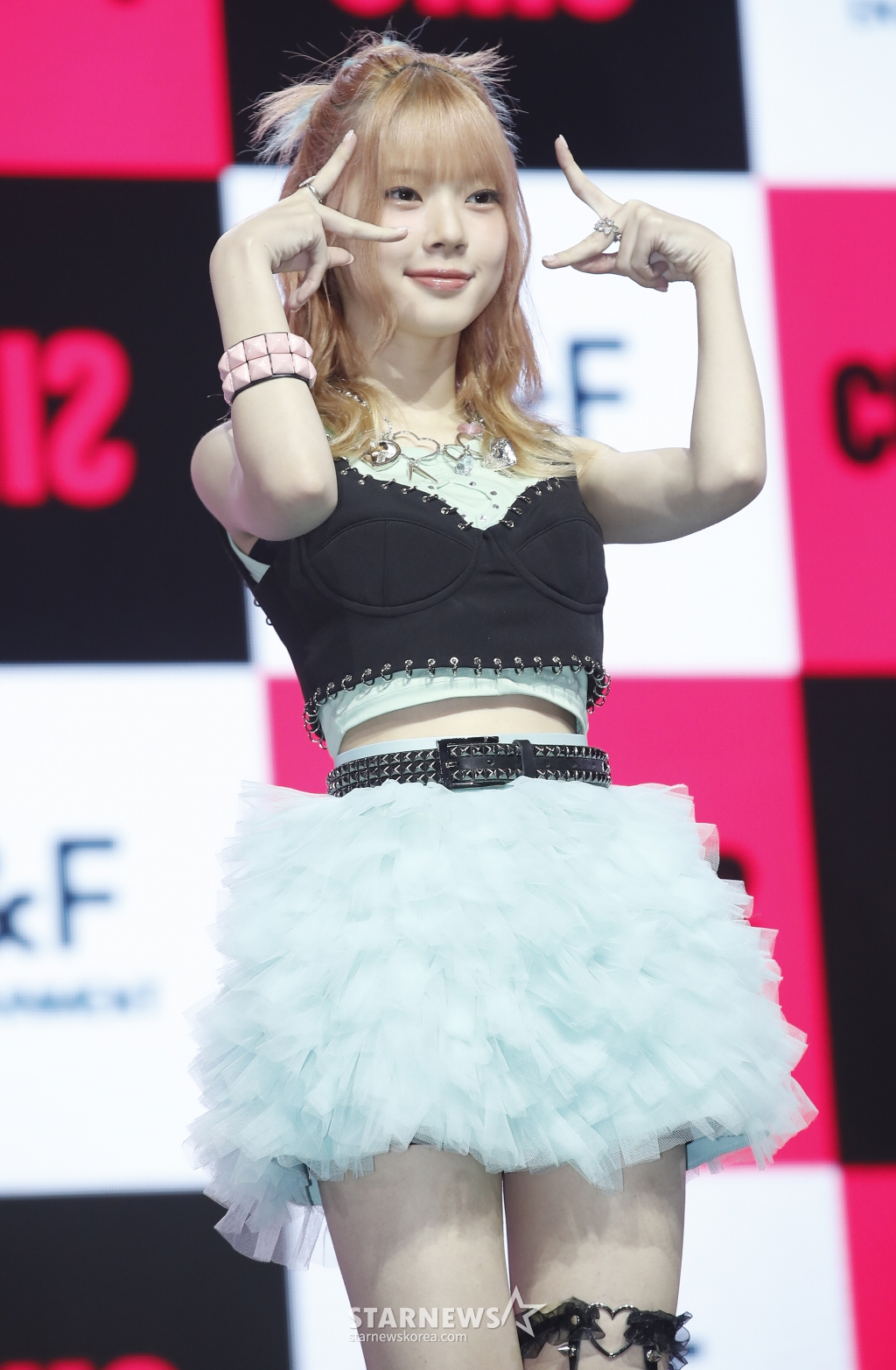 (서울=뉴스1) 권현진 기자 = 유니스 임서원이 6일 서울 광진구 예스24라이브홀에서 가진 첫 번째 싱글앨범 ‘CURIOUS(큐리어스)’ 쇼케이스에서 포즈를 취하고 있다. 2024.8.6/뉴스1 Copyright (C) 뉴스1. All rights reserved. 무단 전재 및 재배포, AI학습 이용 금지. /사진=(서울=뉴스1) 권현진 기자
