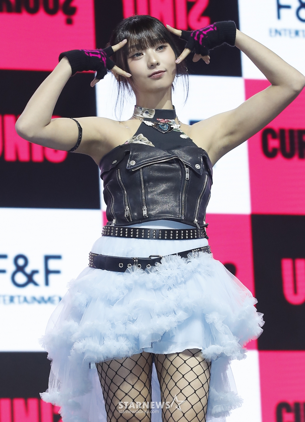 (서울=뉴스1) 권현진 기자 = 유니스 젤리당카가 6일 서울 광진구 예스24라이브홀에서 가진 첫 번째 싱글앨범 ‘CURIOUS(큐리어스)’ 쇼케이스에서 포즈를 취하고 있다. 2024.8.6/뉴스1 Copyright (C) 뉴스1. All rights reserved. 무단 전재 및 재배포, AI학습 이용 금지. /사진=(서울=뉴스1) 권현진 기자