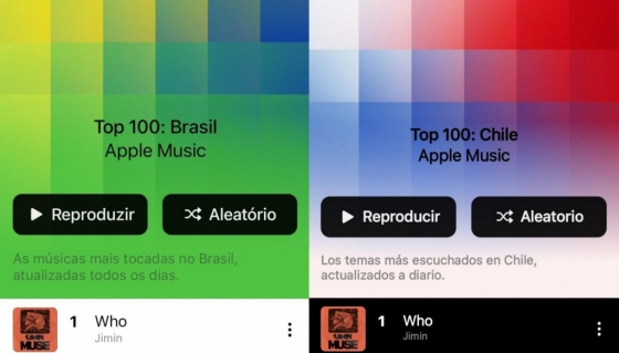 또 칠레 애플 뮤직 톱100에서 25일부터 3일 연속 1위를 기록하며 K팝 가수 최초이자 유일한 기록과 함께 최장 기간 보유 기록을 달성, 28일 이후 칠레 애플뮤직 'K-POP인기곡', 'POP인기곡', General인기곡', '톱100 칠레', '뮤직 비디오', '산티아고 톱25'의 모든 부분에서 3일 연속 1위에 올라 칠레와 브라질 애플뮤직에서 3일 연속 올킬 기록을 세웠다.