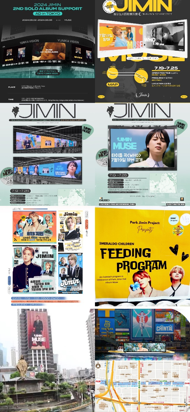 또 다른 일본 팬들은 오사카 도톤보리 강에 'JIMIN-MUSE' 호를 띄워 주목을 받았다. 7월 28일 오후 4시부터 오후 9시까지 40분 ~ 45분 주기로 '뮤즈' 홍보 영상을 담은 LED 애드 크루즈가 도톤보리 다리를 중심으로, 왼쪽은 부정교(우키니와교)에서 오른쪽은 니혼바시까지 운행해 이곳을 찾은 현지인들과 관광객들로부터 큰 호응을 얻었다.