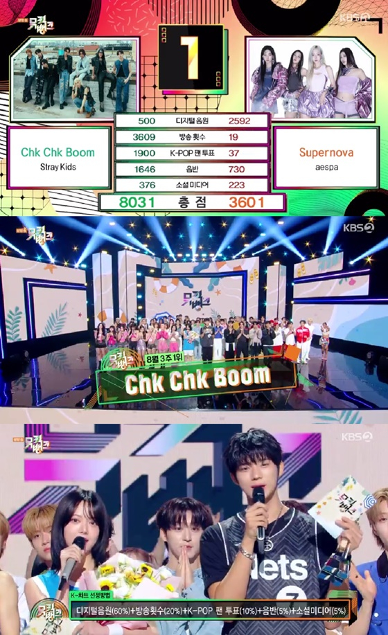 1위 후보로는 스트레이 키즈 '칙칙붐(Chk Chk Boom)', 에스파 '슈퍼노바(Supernova)'가 이름을 올렸다. 디지털 음원 점수, 소셜 미디어 등을 합산한 결과 스트레이 키즈에게 1위가 돌아갔다.