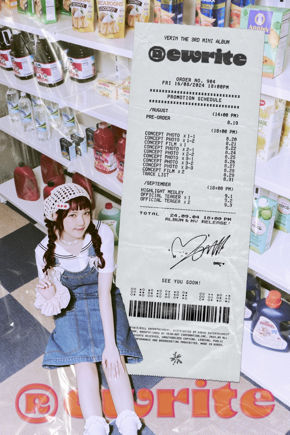 더불어 스케줄러 속 키치한 무드 역시 눈길을 끈다. 예린은 데님 원피스에 딸기 헤어핀으로 포인트를 준 스타일링으로 상큼한 매력을 극대화하는가 하면, 하단에 수놓인 앨범명 로고가 시선을 사로잡으며 신보 콘셉트를 향한 궁금증을 자아내고 있다.