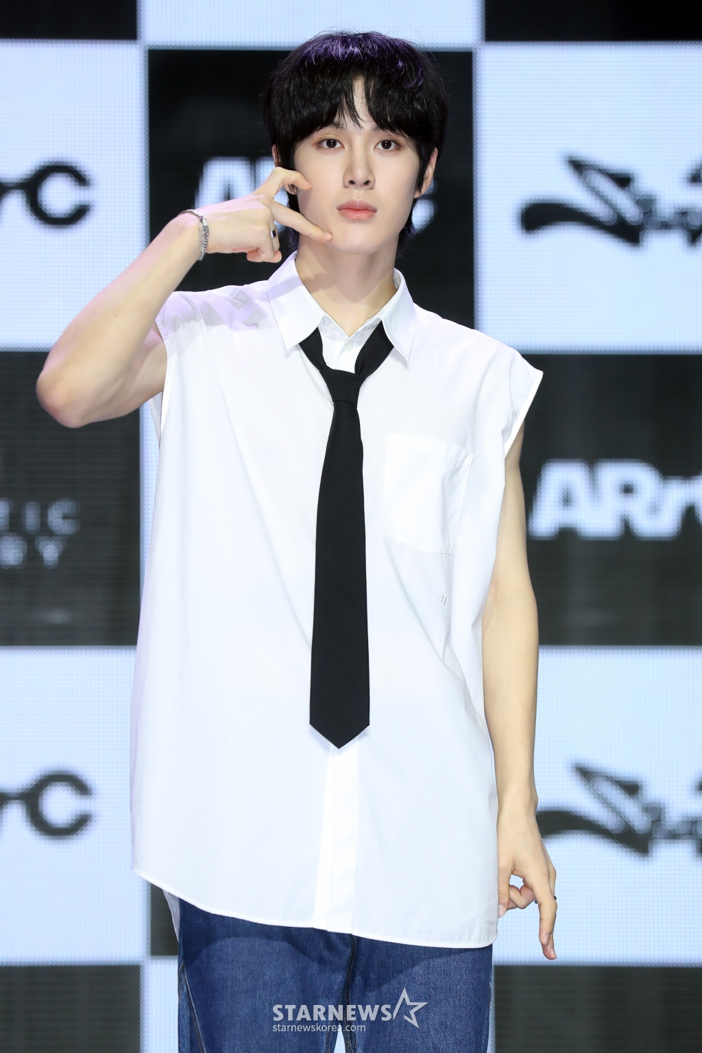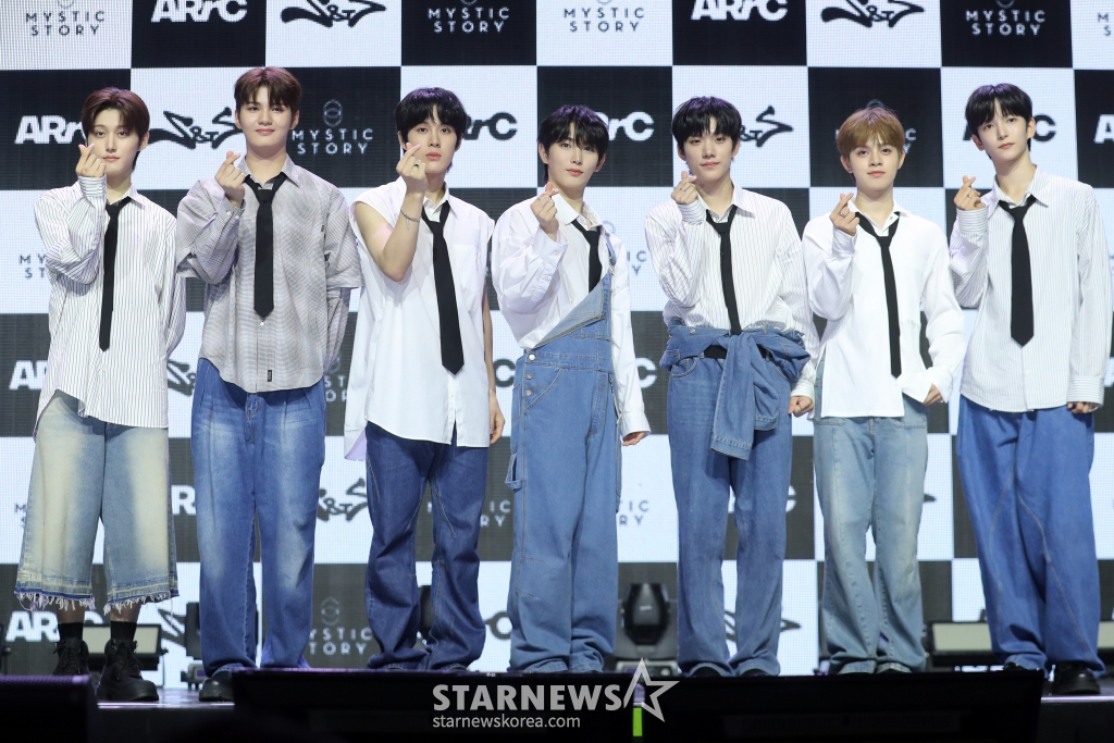 아크(최한, 도하, 현민, 지빈, 끼엔, 리오토, 지우)는 19일 오후 서울 용산구 한남동 블루스퀘어 마스터카드홀에서 첫 번째 미니앨범 '에이알스퀘어드씨(AR^C)' 발매 기념 데뷔 쇼케이스를 개최했다.