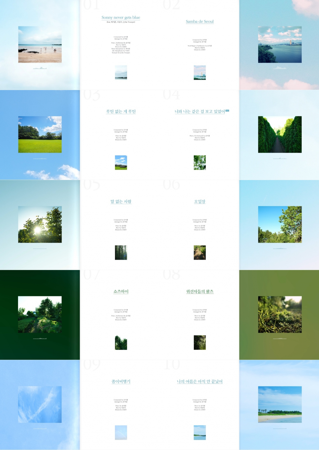 이어 잠을 못 잘 정도의 쇼츠 중독을 그린 '쇼츠하이', 현실의 가면무도회 같은 인간관계를 다룬 '위선자들의 왈츠', 나의 모습을 땅에 떨어지는 것이 숙명인 종이비행기에 빗댄 '종이비행기', 이번 여름을 좋은 추억들로 가득 채울 것이라는 '나의 여름은 아직 안 끝났어' 등 '여름'을 주제로 다양한 감정을 풀어낸 10개 연주곡이 수록된다.