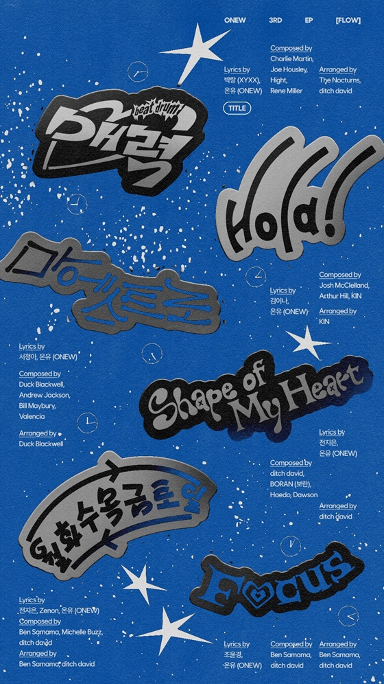 트랙리스트 이미지는 마치 은하수를 연상케 하는 푸른 배경 위로 각 수록곡의 제목과 크레딧이 적혀 있다. 'FLOW'라는 앨범 타이틀에 걸맞게, 시간의 흐름을 나타내는 별과 시계 모양의 그림들이 곳곳에 삽입돼 있어 눈길을 끈다.