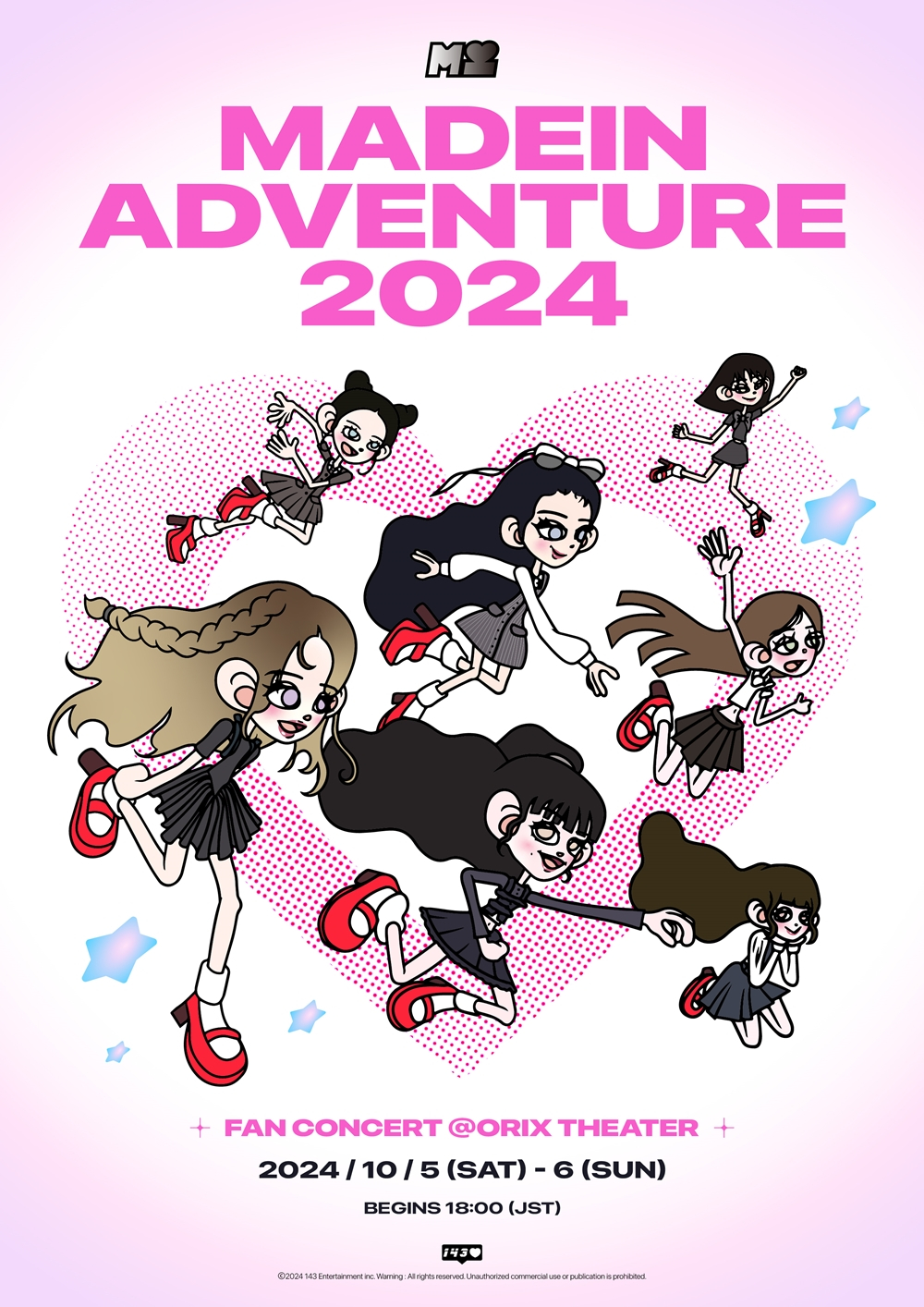 메이딘(마시로, 예서, 미유, 수혜, 가은, 세리나, 나고미)은 오는 10월 5일과 6일 양일간 일본 오사카 오릭스 극장에서 'MADEIN "ADVENTURE" 2024(메이딘 어드벤처 2024)'를 진행한다. 특히 메이딘은 정식 데뷔를 하기 전임에도 불구하고 일본에서 팬 콘서트 개최 소식을 알리며 5세대 걸그룹 기대주임을 입증했다.
