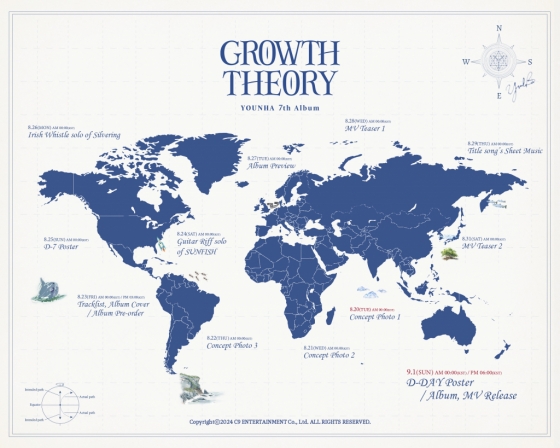 윤하의 정규 7집 'GROWTH THEORY'는 오는 9월 1일 오후 6시 각종 온라인 음원 사이트를 통해 발매된다.