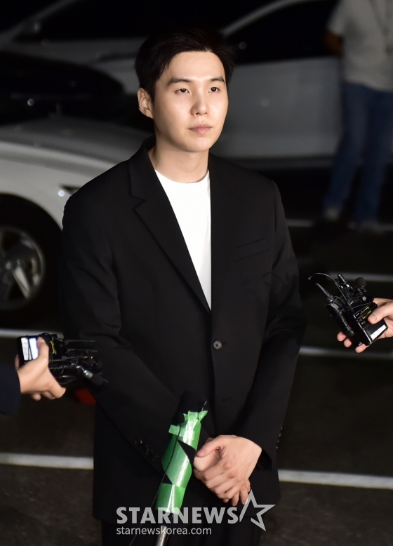 슈가는 지난 6일 서울 한남동 인근에서 전동 스쿠터를 타다가 넘어진 이후 음주 사실이 적발돼 입건됐다. 조사 당시 슈가의 혈중 알코올농도는 0.227%로 만취 상태였던 것으로 알려졌으며 이후 슈가는 23일 서울 용산경찰서에 출석해 조사를 받았다. 경찰은 "슈가가 혐의 사실에 대해 인정했다"고 밝혔다.
