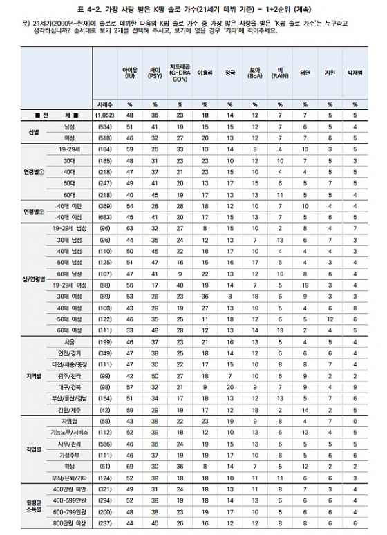 [스타뉴스 창간 20주년 한국갤럽 '가장 사랑 받은 K팝 솔로 가수(2000년 이후 데뷔 기준)' 설문 결과]
