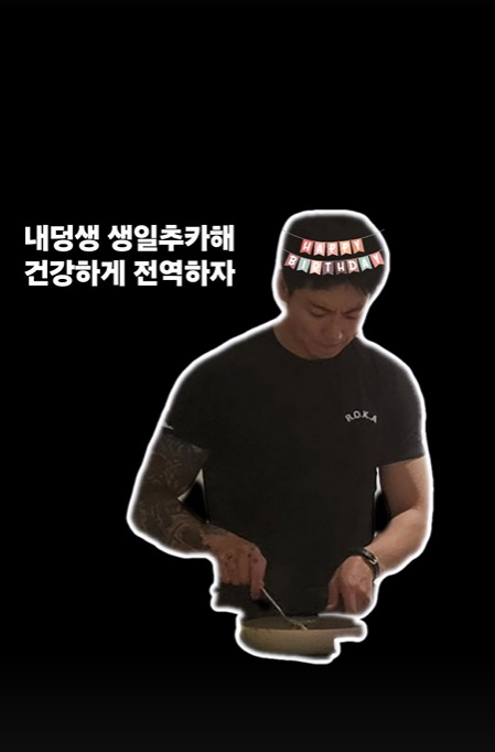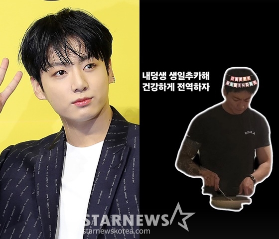 사진에는 정국이 휴가를 나왔을 당시 대한민국 군인 반팔티를 입고 요리하는 모습이 담겨 있었다. 제이홉은 정국의 사진에 'HAPPY BIRTHDAY' 스티커를 붙이며 웃음을 자아냈다.