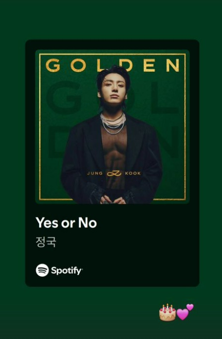 1일 RM은 자신의 계정에 정국의 'Yes or No'를 재생 화면으로 캡처해 공개하며, 케이크와 하트 이모티콘을 적은 게시물을 올렸다.