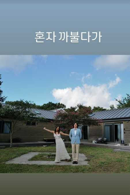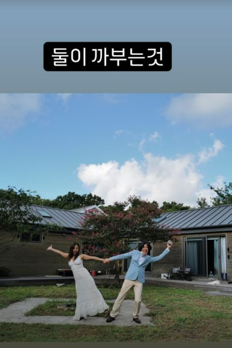 이효리는 이상순과 함께 드레스, 수트를 맞춰 입고 자신의 제주도 집 앞마당에서 결혼 11주년 기념 사진을 촬영했다.